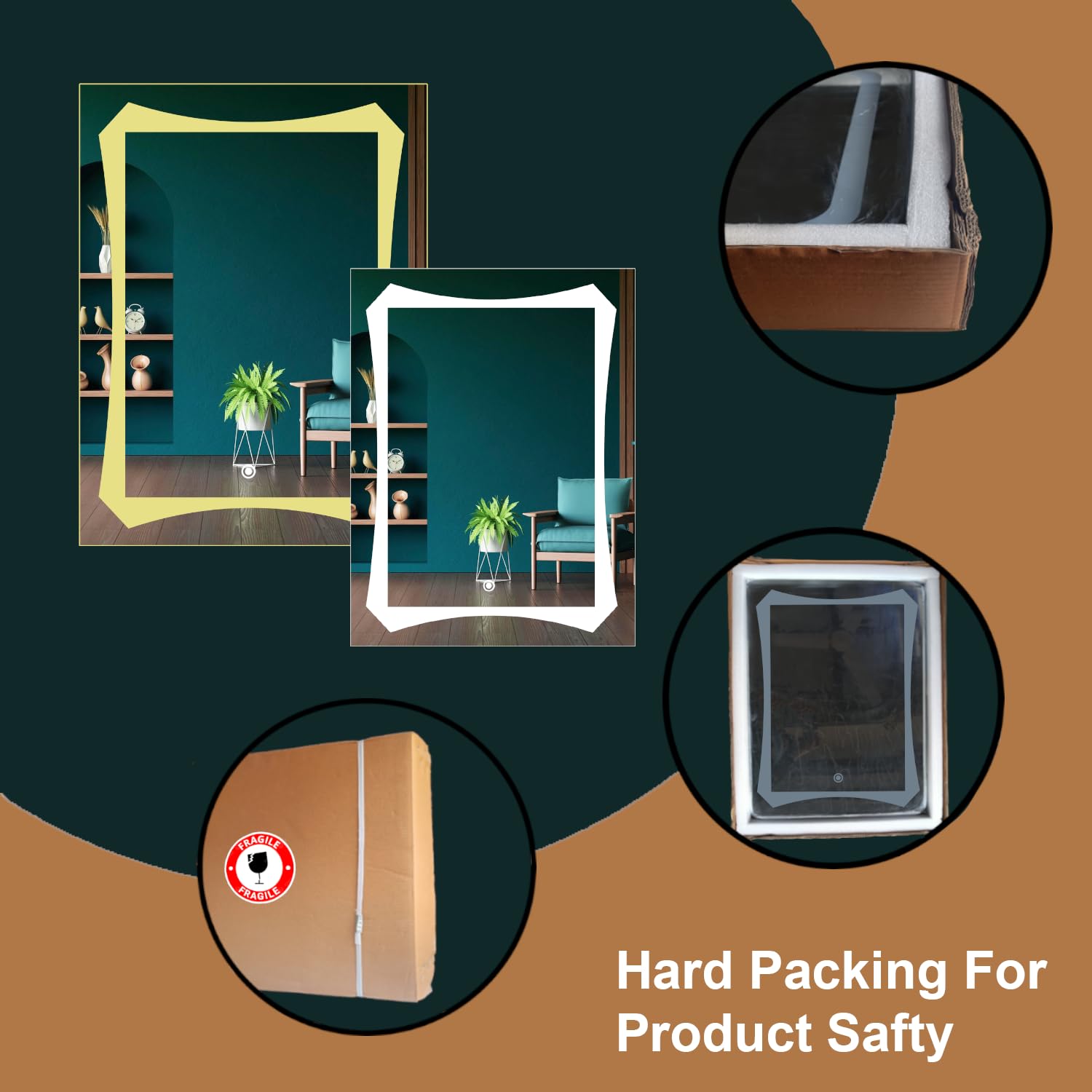 • Strong Packing : Our Sunsyze Mirror packing has passed from multi safety tests like : Heavy weight, Drop test and High Pressure, the package will be receive to you 100% Safely. Please do not accept the order if the packet size is smaller than 21x27x4″ inches (55x70x11 cm).