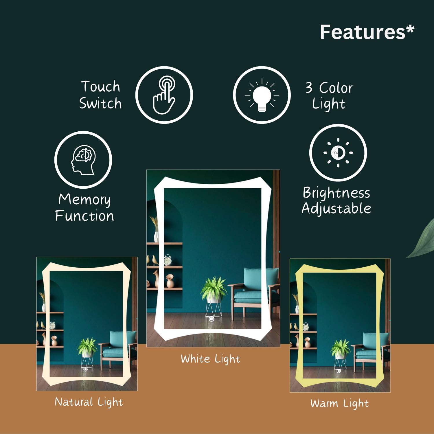 • Multi Feature : This Sunsyze Mirror has 3 colored lights, which can be changed with a sensor and the brightness can be controlled by pressing the touch sensor. You can change brightness as per your requirements, hence Dimmer feature helps to consume less power of electricity .