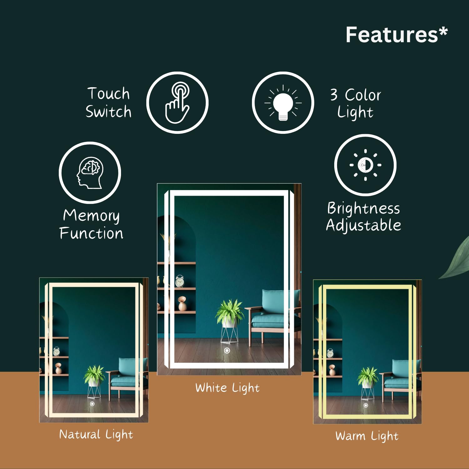 • Multi Feature : This Sunsyze Mirror has 3 colored lights, which can be changed with a sensor and the brightness can be controlled by pressing the touch sensor. You can change brightness as per your requirements, hence Dimmer feature helps to consume less power of electricity .